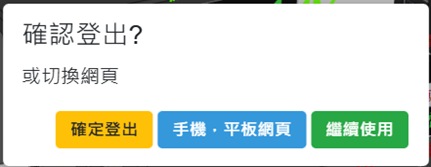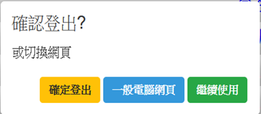 一般電腦於登出時可以選擇「確定登出」,或是「手機、平板網頁」、「繼續使用」
