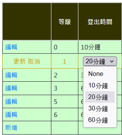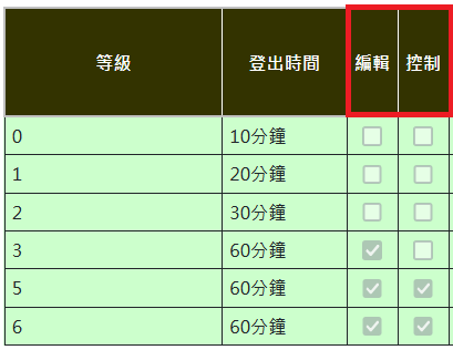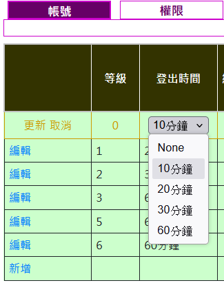 亦可於權限內設定自動登出時間