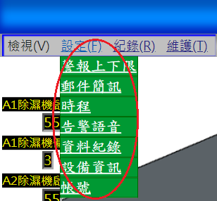 左上下拉視窗有設定、檢視、紀錄、維護。滑鼠移入會出現下拉式選單
