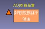 顯示即時的空氣品質[AQI]資訊,危害為褐紅色、危險為紫色,過量為紅色、中量則為橘色、普通為黃色、良好為綠色。AQI警戒值及顯示顏色、文字可自行更改
