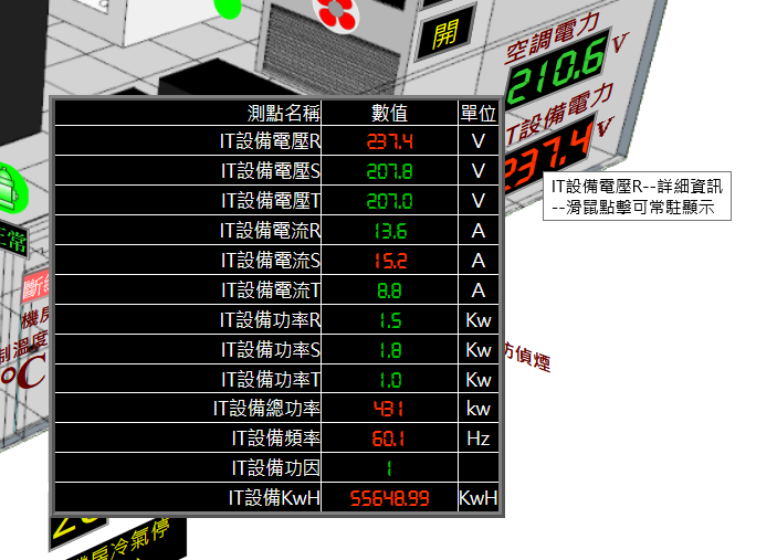 將滑鼠移至電力數值上,可顯示詳細數值資訊