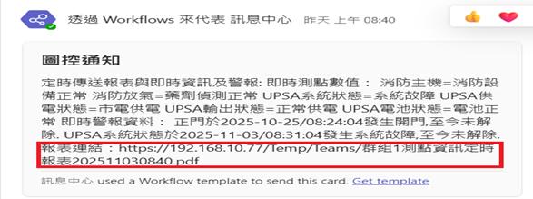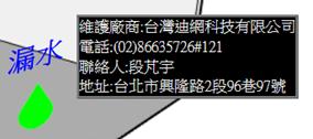 當數值正常時,滑鼠移至測點名稱時,立即顯示該設備維護廠商資訊。