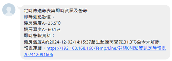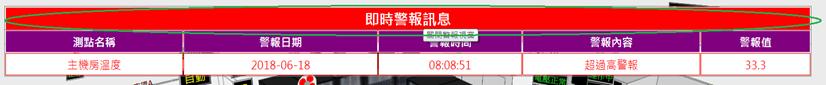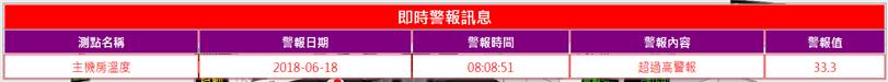 當數值異常產生警報時,滑鼠移至測點名稱時,立即顯示該設備警報事件資訊