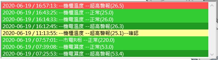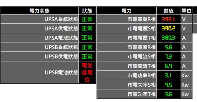 可提供文字說明:正常時,文字說明會顯示綠色[正常]。異常時,文字說明會顯示紅色[故障]。文字說明內容可修改。顯示顏色可自行更改