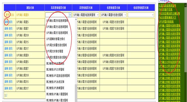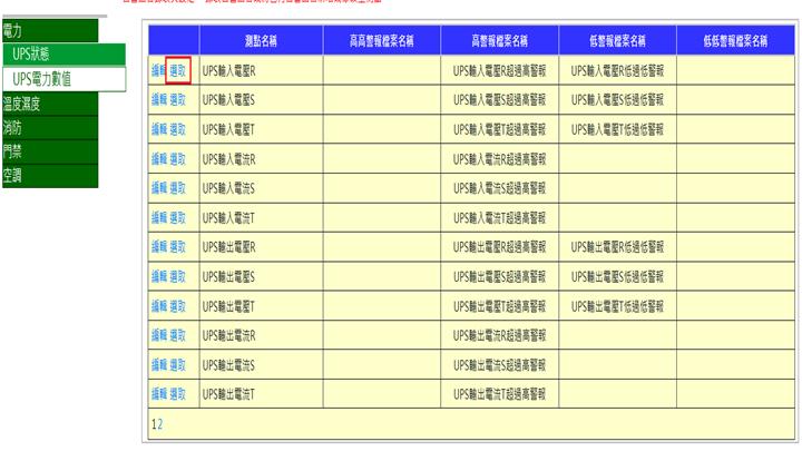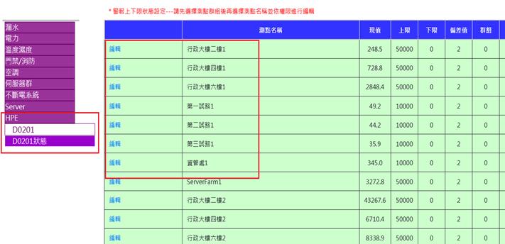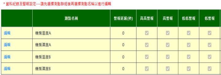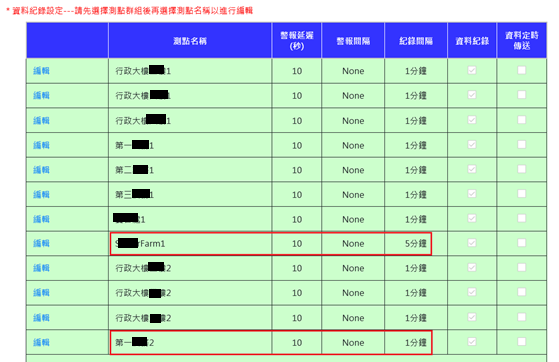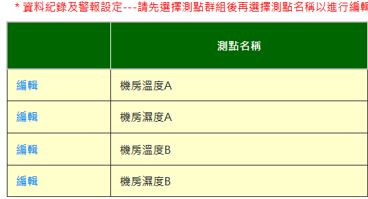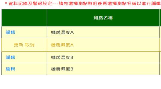 勾選選擇表示要對該埠進行編輯,可修改測點名稱。未修改之測點請勿勾選選擇