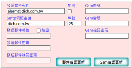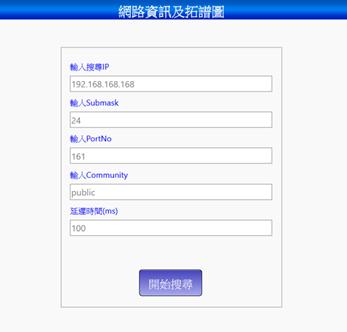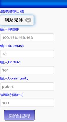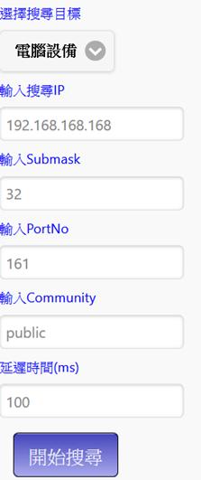 輸入IP後點選開始搜尋,若系統已有設定值時會出現原有設定值,若無則顯示錯誤題示