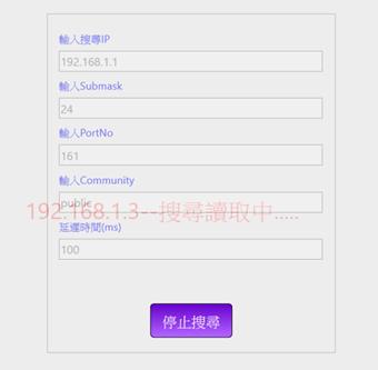輸入IP後點選開始搜尋,出現搜尋結果並自動顯示系統已有設定值