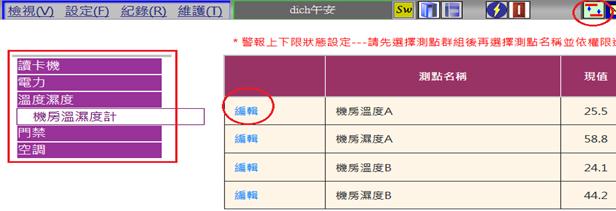可設定備援空調啟動之溫度或濕度[需輸入管理者帳號密碼]