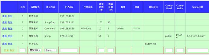 搜尋之設備未開啟SNMP時,只可偵測連線狀態及回應時間