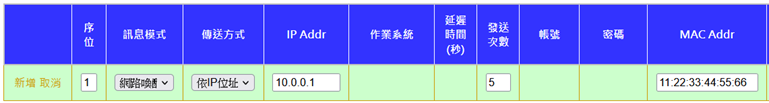 b. 輸入要連線設備之IP及相關資訊