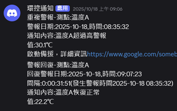 在達到溫度與濕度設定值時,會啟動空調備援機制