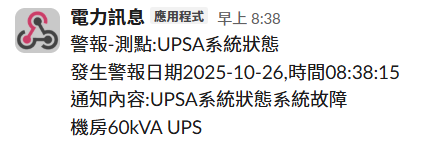 設備維護訊息: