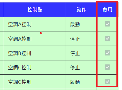 若有控制權限,可在畫面上之開關,控制空調設備的啟動與停止,自動或手動