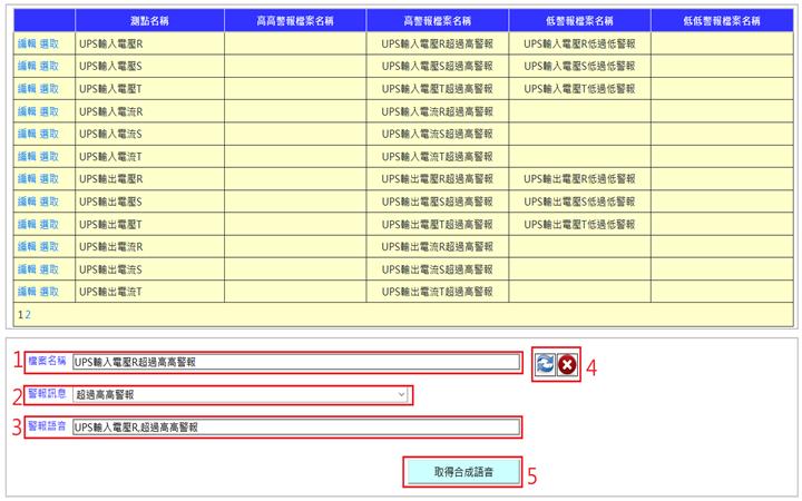 若勾選新設定值後欲返回原有設定值,則點擊取得後將會出現原有設定值及測點名稱