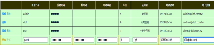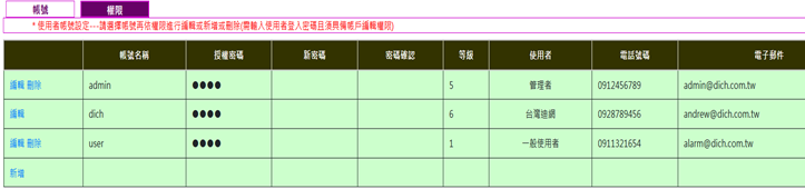 管理者:輸入帳號名稱與密碼,點選登入進入具功能頁面的主畫面