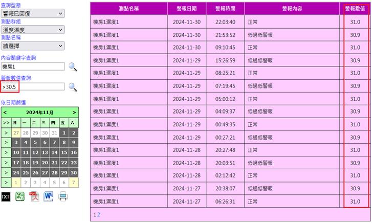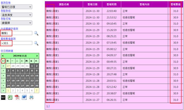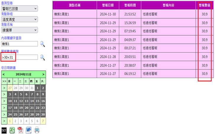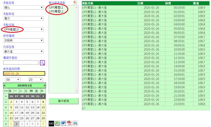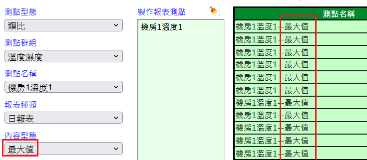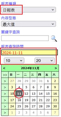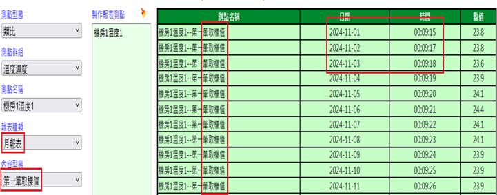 註:當屬性選擇時/日/月/年時,測點只可選擇一筆。且不可為第二筆之後