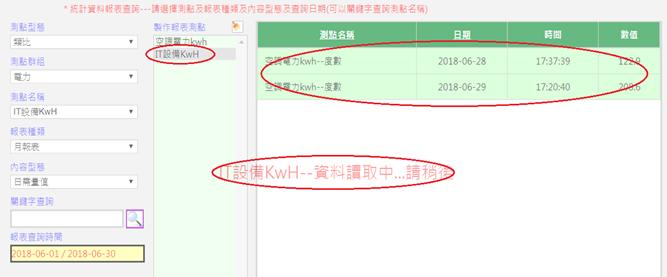 顯示監控區域監測元件電力數值/KwH用電需量