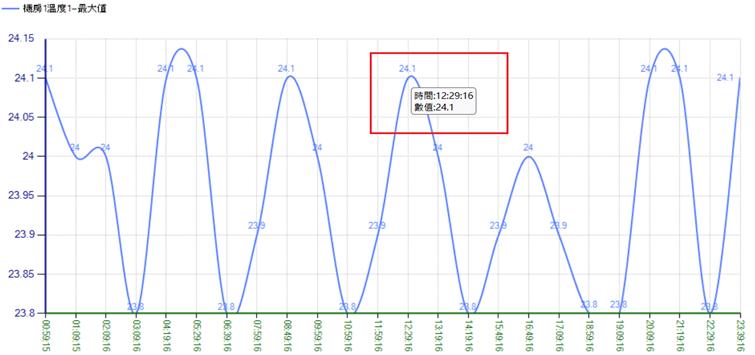 Max— 選擇時段內之最大值,Min— 選擇時段內之最小值