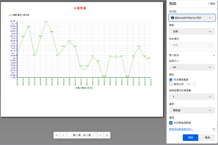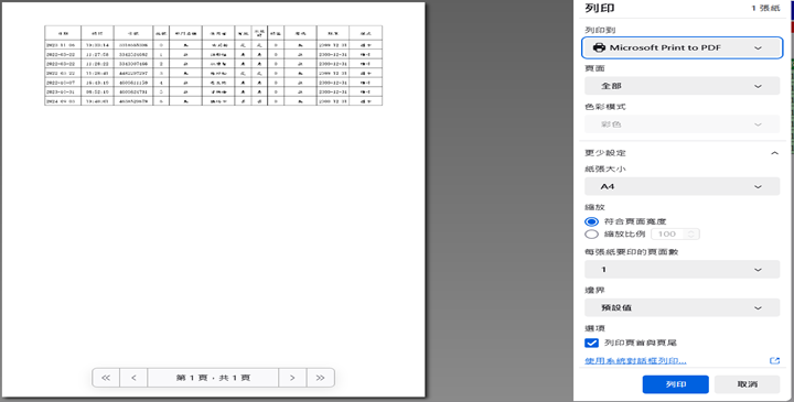 可將參數設定紀錄資料輸出檔案為文字檔(TXT)、Excel檔(csv)、Word、PDF檔或直接列印