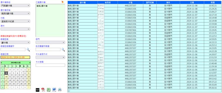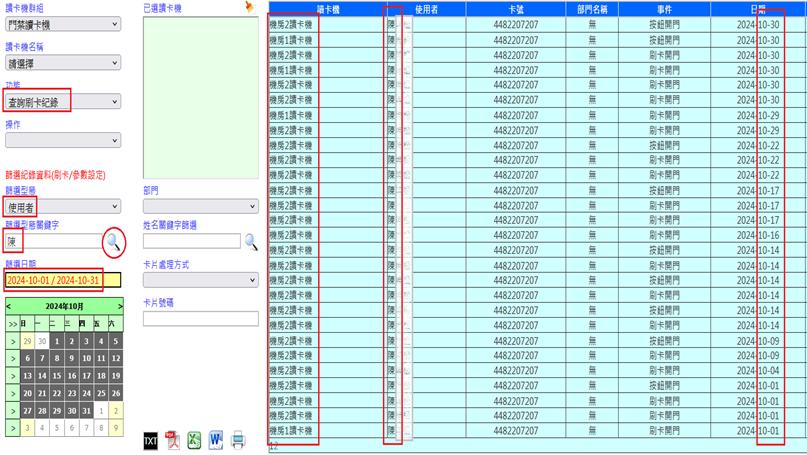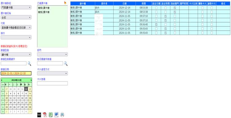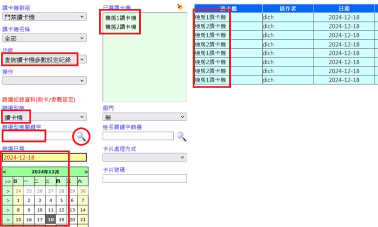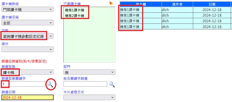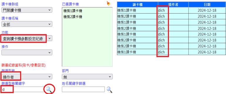 查詢操作者[系統登入名稱]曾設定讀卡機參數[如:日期、時間、強迫開門等]之紀錄