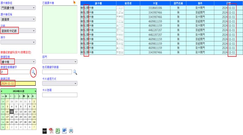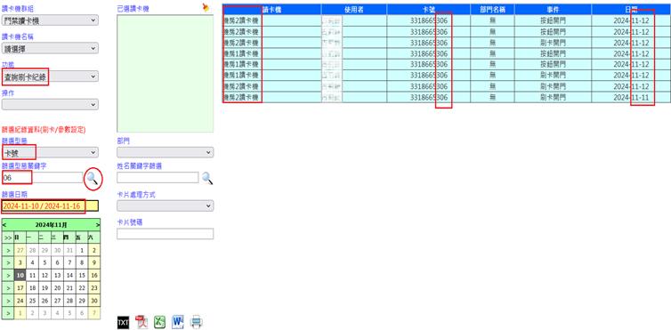 查詢方式以讀卡機、操作者為關鍵進行查詢