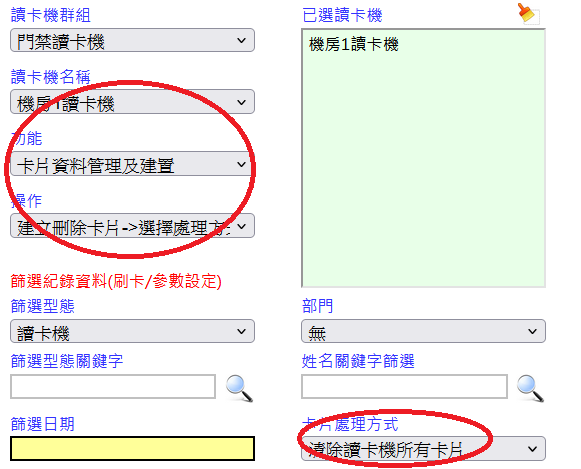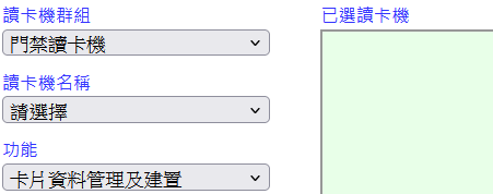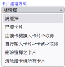 篩選型態關鍵字欄位輸入讀卡機關鍵字[模糊比對]或於[讀卡機名稱]欄位選擇讀卡機[讀卡機可多選][兩者皆輸入時以”篩選型態關鍵字”欄位輸入讀卡機關鍵字為查詢優先]