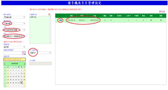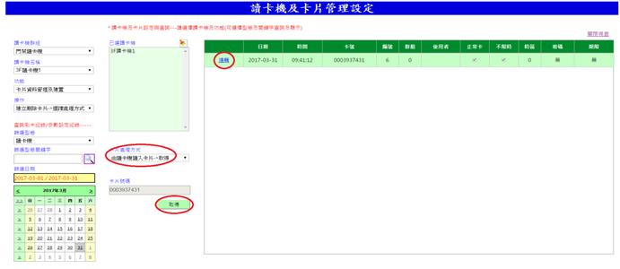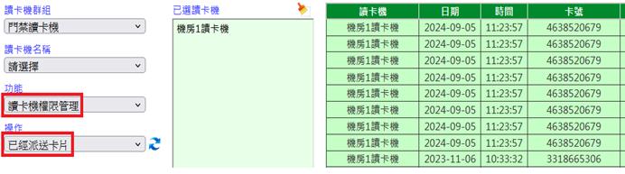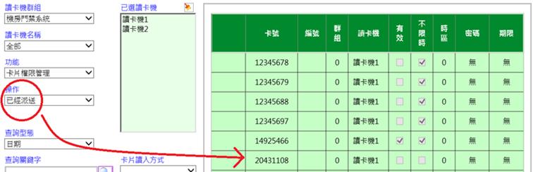 查詢已完成派送至讀卡機的卡片。若有卡號相同者,以日期為後者為最後權限