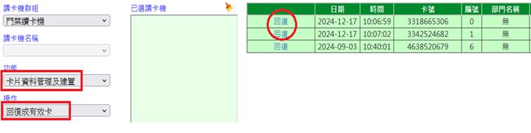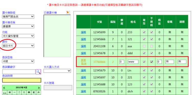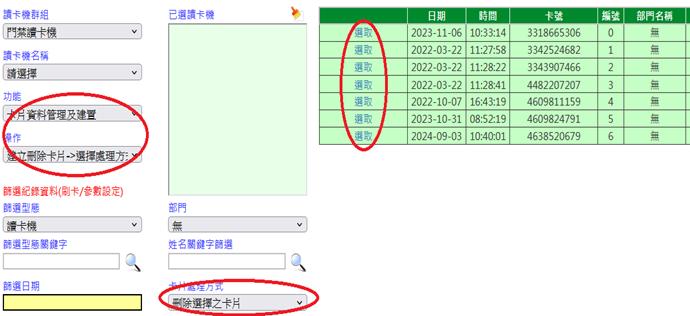 注意:要比對卡片號碼方有門禁功能。