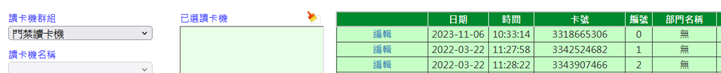 查詢讀卡機參數設定紀錄:註:須具備”編輯”權限