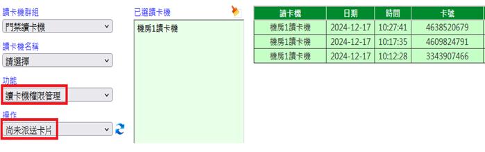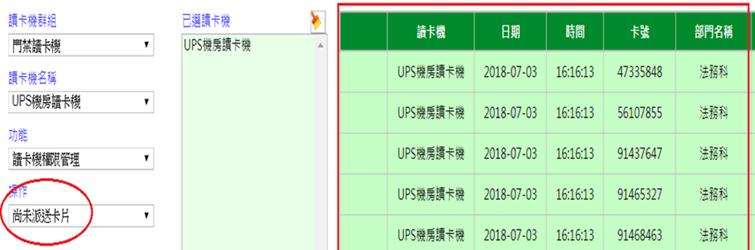 當讀卡機連線正常,派送會立即執行,則尚未派送的查詢結果將為[無資料]