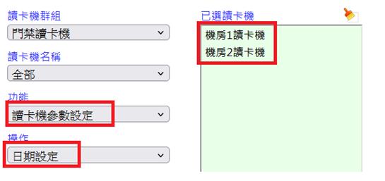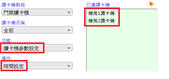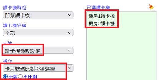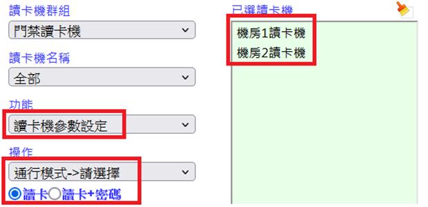 操作參數設定前,先選擇要設定的讀卡機,可設定一台或同時設定多台