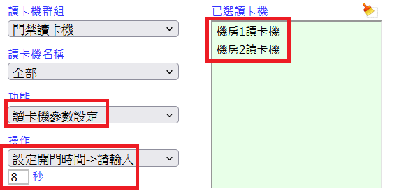 開門秒數將設定到指定之讀卡機