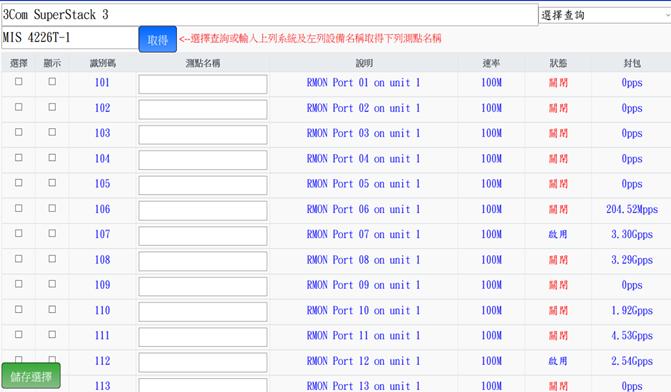 欲刪除該埠則勾選選擇並將名稱刪為空白後,再按儲存選擇即可將該點刪除
