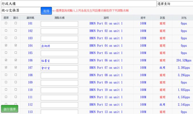 d. 欲修改該埠測點名稱則勾選選擇及修改名稱後,再按儲存選擇