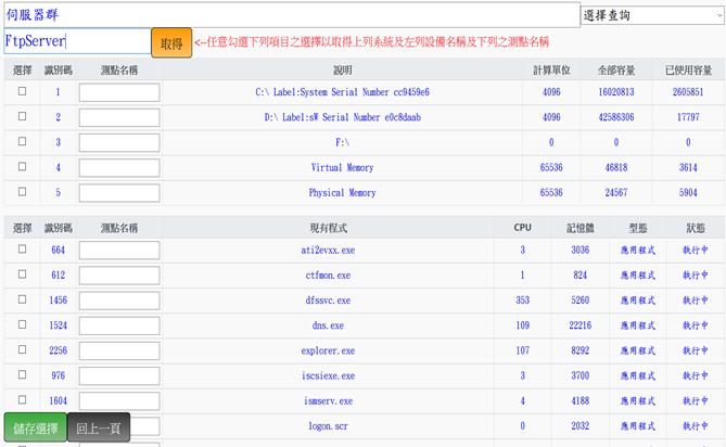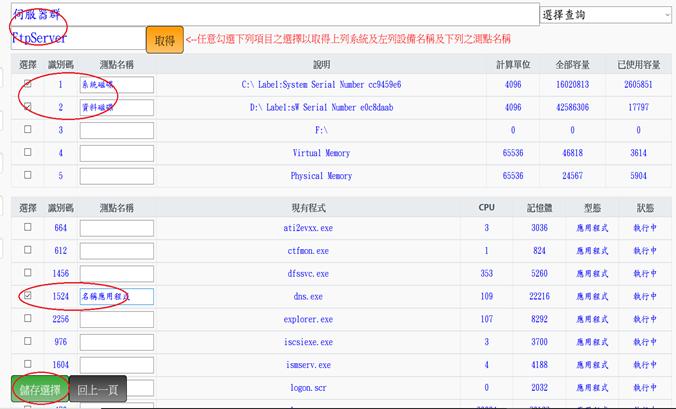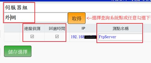 輸入系統點,勾選選擇,並輸入測點名稱,再點擊儲存選擇後,可儲存測點